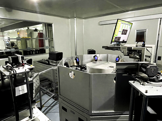 Blackbody sources have high emissivity, which means they radiate and absorb almost all electromagnetic radiation (an ideal blackbody source has an emissivity of 1.0, completely absorbing and emitting all radiation). Therefore, temperature calibration of the thermal imager can be achieved by correlating the blackbody infrared radiation received by the thermal imager with a known temperature. According to the Stefan-Boltzmann law, the total energy radiated per unit area and per unit time of a blackbody source is proportional to the fourth power of the temperature of the blackbody source. Due to the nonlinear relationship between infrared radiation energy and temperature, in order to calibrate the thermal imager, multiple temperature samples covering the entire temperature measurement range need to be selected and presented to the thermal imager continuously. Considering the influence of heat dissipation and temperature drift of the thermal imager itself, a series of blackbody sources are used for calibration process in a short time. In HIKMICRO calibration laboratory, multiple blackbody sources are placed in a circular arc, and the infrared thermal imager is placed on a rotatable testbed at the center of the circle. They are connected to the automatic control center of the calibration system. The thermal imager is aimed at each blackbody source in turn to obtain radiation response signals, i.e. grayscale. The calibration system correlates the grayscales to referential temperatures and generates calibration response curves that will be saved in the camera’s memory. In practical applications, the corresponding temperature degree can be calculated according to the received radiation response signal of targets. The calibration process of temperature measurement ensures compliance with specifications.