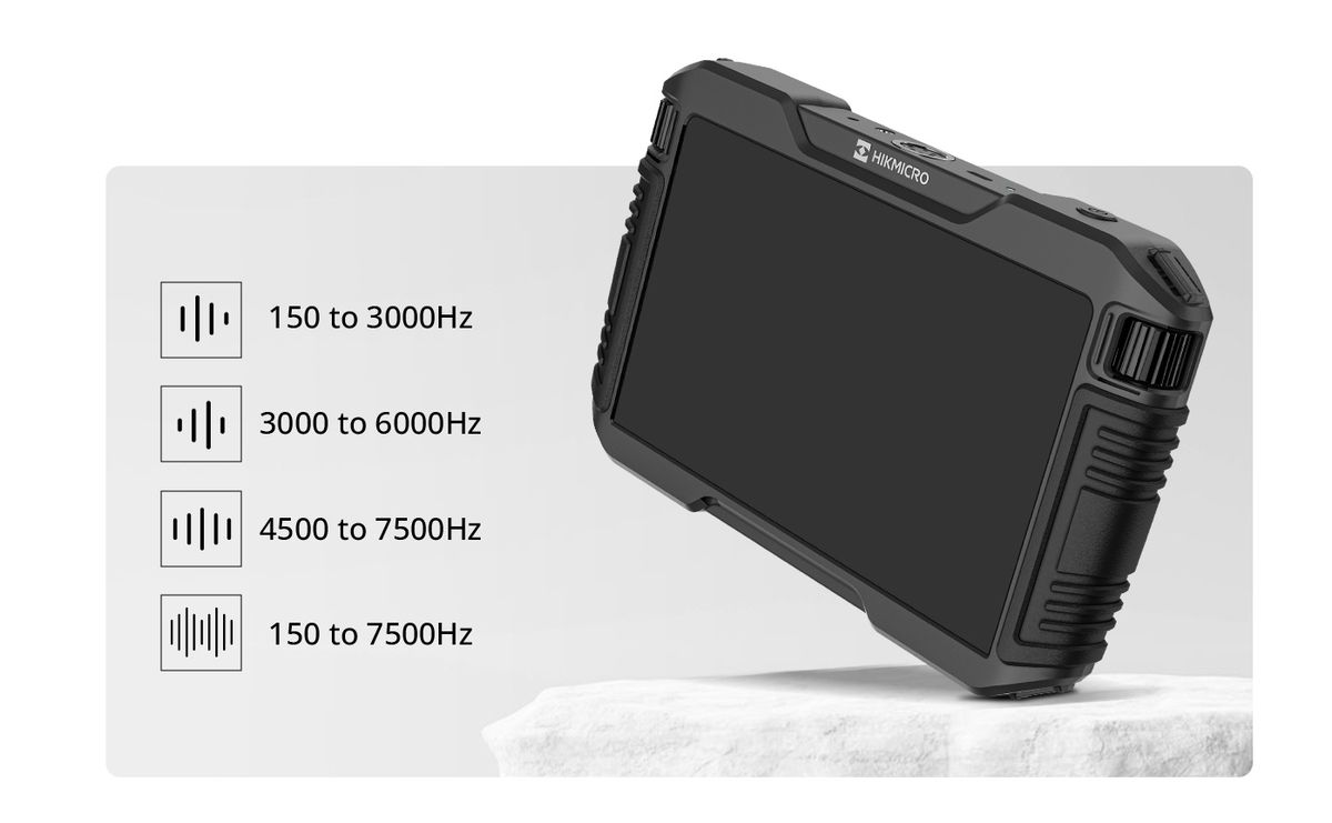 Four Indoor Band Pass Filters – HIKMICRO AD21P is able to receive signals within the 150 Hz to 7500 Hz range. If there are disruptive noises in the environment, by changing the frequencies of the Indoor low frequency and Indoor high frequency you can apply 4 different filters on the sound signals so as to better hear the water leaks.