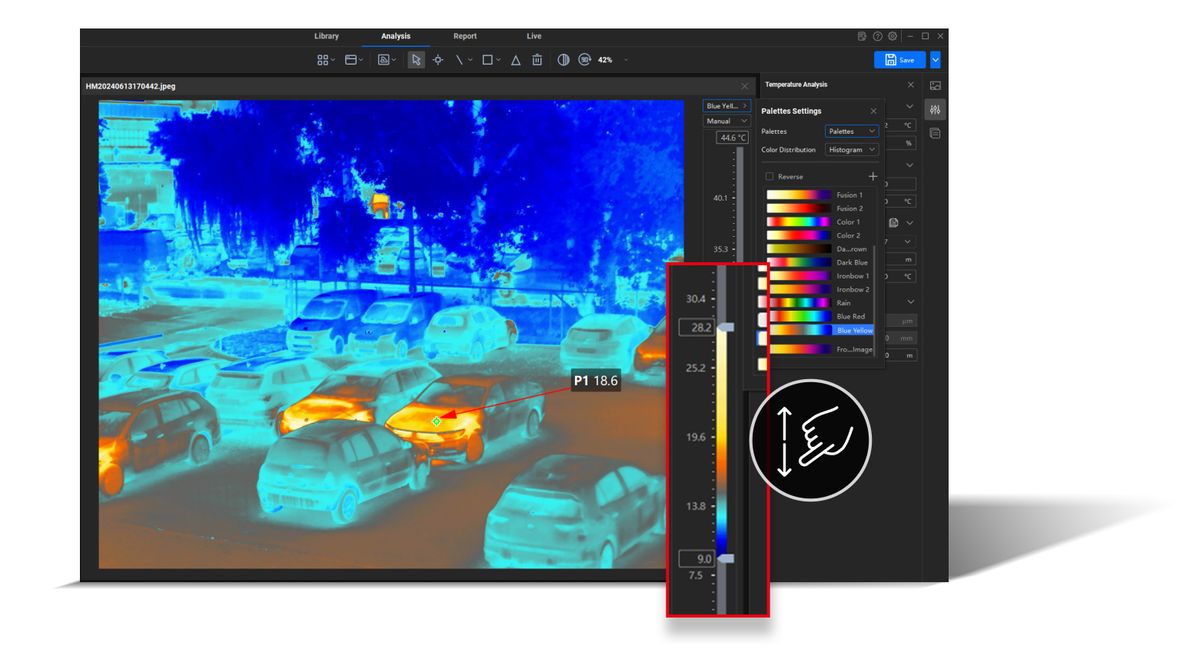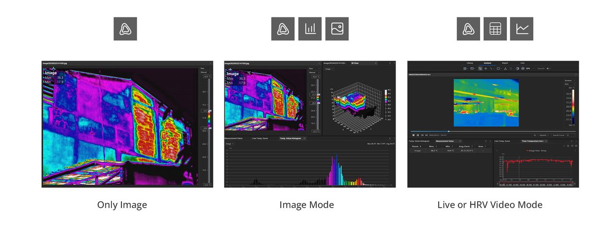 Flexible Window Layouts for Every Scenario – HIKMICRO Analyzer can easily customize the number, size, and position of analysis windows. Switch between three quick layouts – image-only, dual mode, or live analysis – to adapt instantly to your workflow.