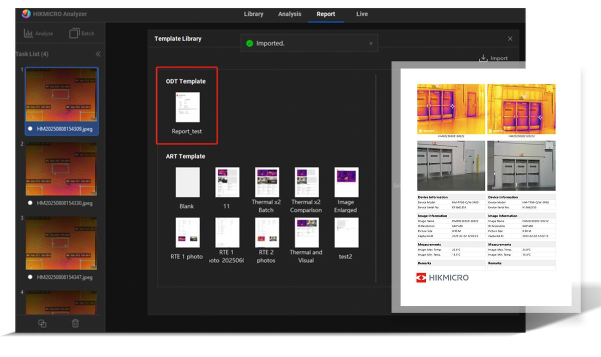 Customizable Report Templates with ODT Support – Import and export reports in ODT format with fully customizable templates. The new usage guidance page reduces learning time and helps generate professional reports with ease.