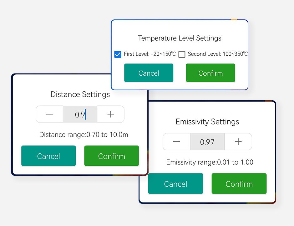 Multiple Professional Settings – Providing professional settings like emissivity/distance/range of your thermal camera allows you to get the best thermal imaging images and temperature readings of different surfaces.