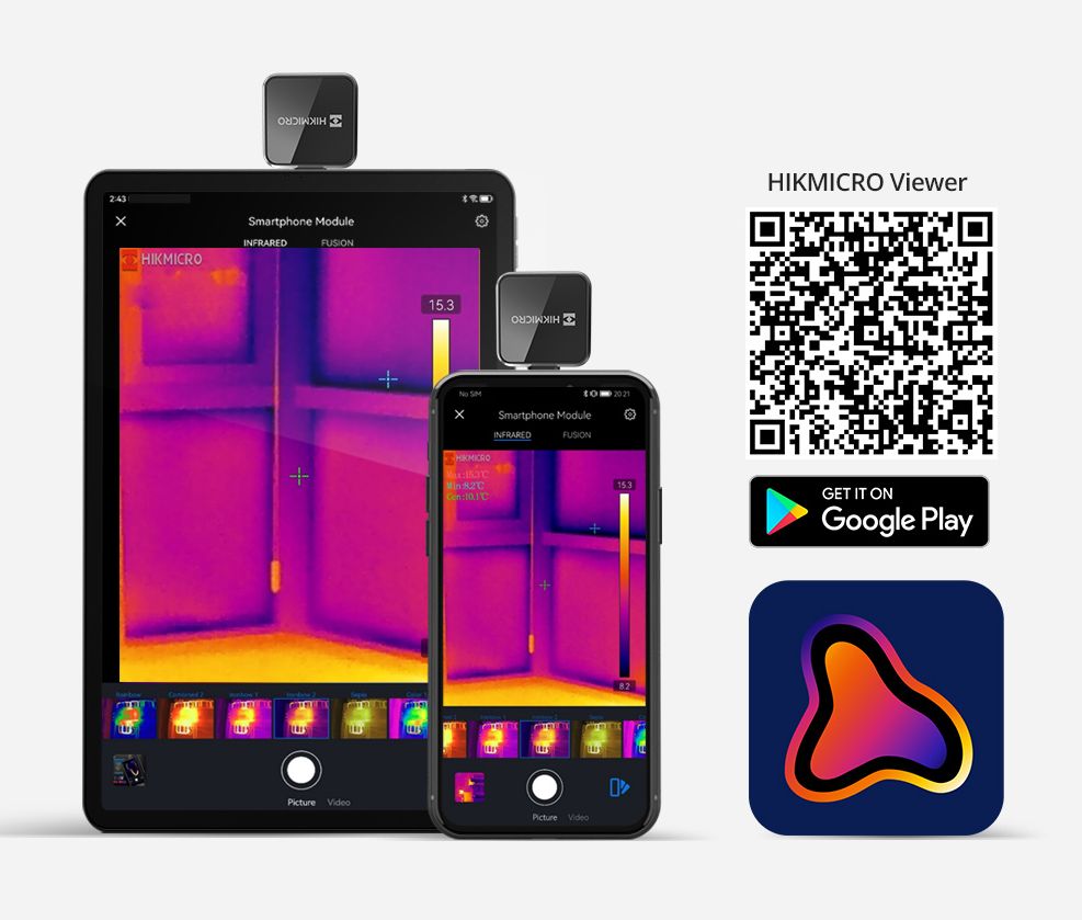 Mini Series APP for smartphone or tablet – Min2Plus is compatible with our free HIKMICRO Viewer for smartphones providing a user-friendly user interface and the link to operating the camera.