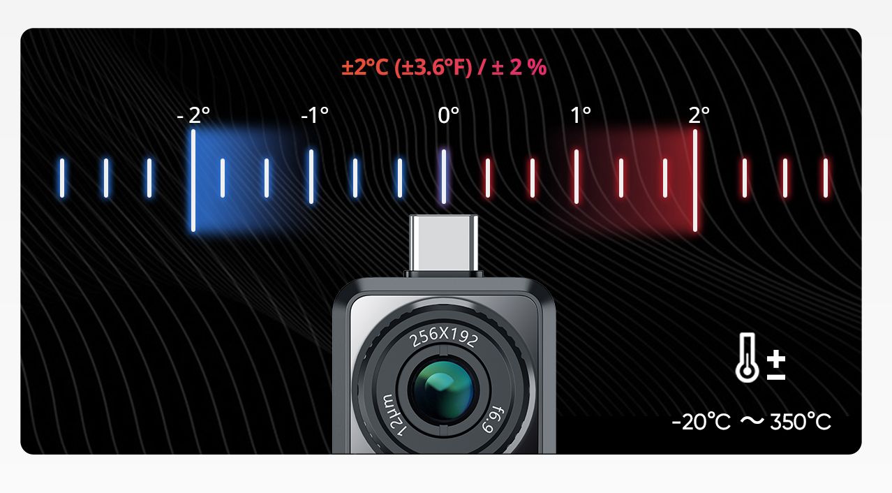 Accurate Temperature Measurements – Mini2Plus accurately measures temperatures from -20°C (-4°F) to 350°C (662°F), with a temperature accuracy up to ±2°C (±3.6°F) / ± 2 %.