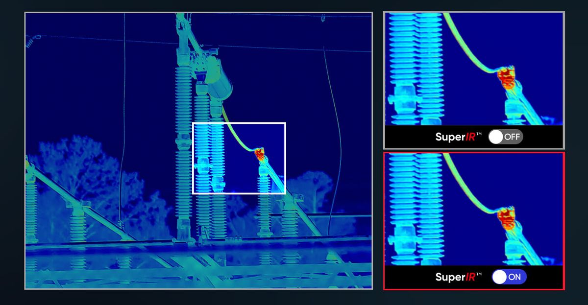 SuperIR – Powered by HIKMICRO SuperlR image enhancement technology, images are upscaled 4X to deliver highly detailed live and recorded radiometric images for inspection and reporting.