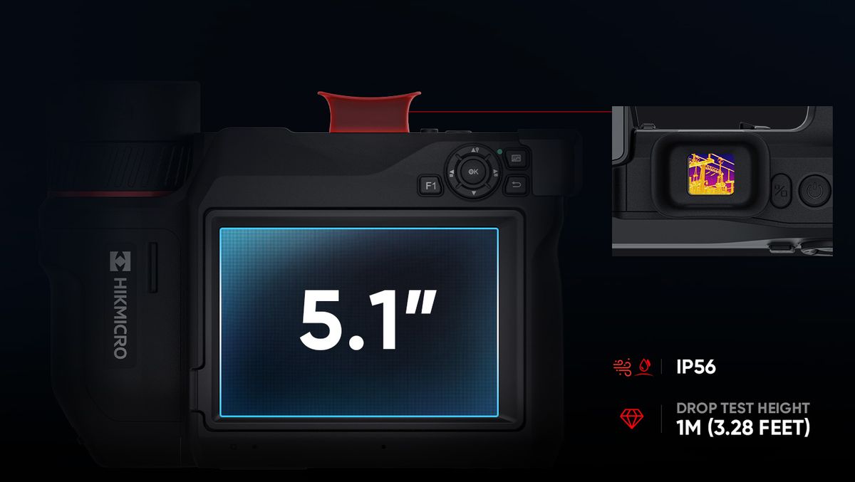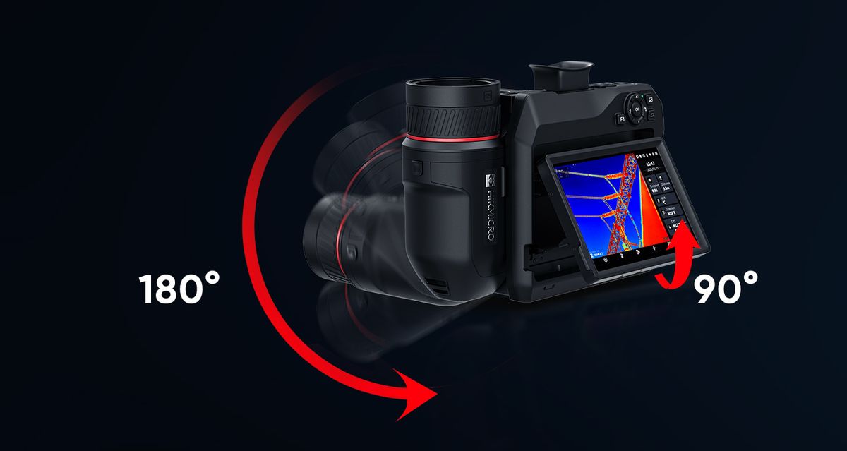 Flexible Rotating Lens and Screen – The 90° rotating screen and the 180° rotating lens design help to easily view the area around, between, above, or below the target. Keeping a safe distance allows for equally flexible inspections.