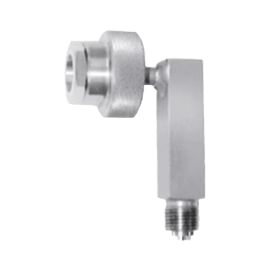 CPB5000-WA90 | Angled connection (90°) for test specimens or references with axial pressure connection at the back 1/2″ BSP M. With integrated seal and knurled nut for toolless pressure gauge change |